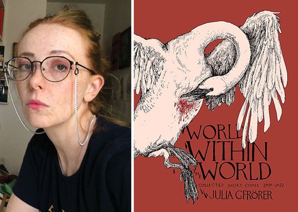My beautiful and talented wife Julia Gfrörer has been nominated for an Ignatz Award for World Within the World, her magnificent career-spanning collection of short stories. (I wrote four of them, which means I’m like 1/60th an Ignatz Award nominee myself!) Please submit an awards ballot request and vote for her here, as she is very dear to me and the book is brilliant. Thank you!