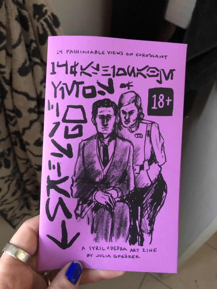 My gorgeous genius wife Julia has fully restocked her webstore with new items! Now you can purchase a copy of her career-spanning collection World Within the World directly from us, as well as handbound collections of her zines/minicomics and her out-of-print graphic novel Vision, her new minicomic Children of the Garbage Island, and 14 Fashionable Views of Coruscant, an erotic Andor fanart zine! (Yes, you read me right!)